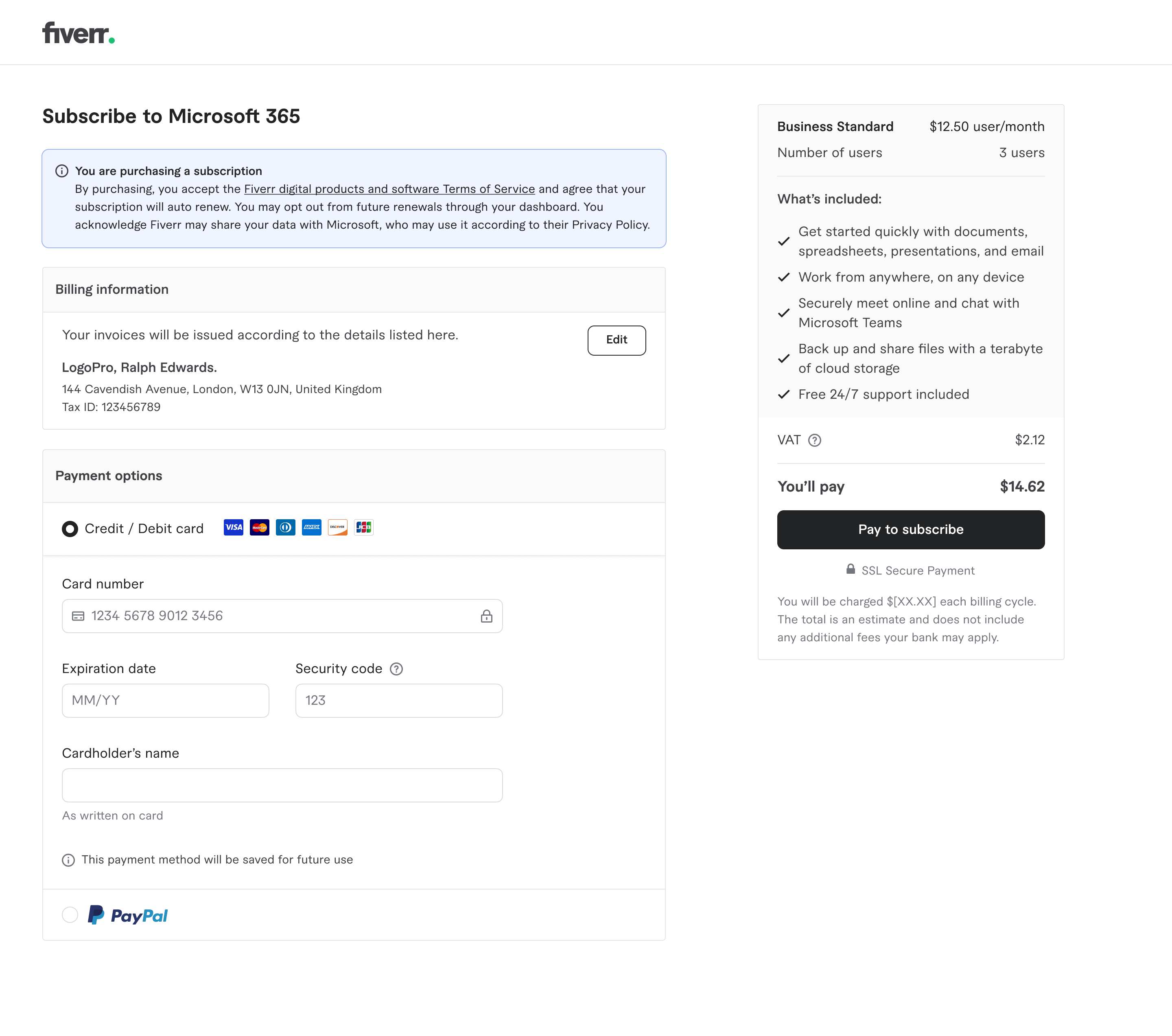Después de comprar una suscripción, deberás configurar una cuenta de Microsoft 365 en Fiver. (vinculación de la suscripción a tu cuenta de Microsoft y a Fiverr)