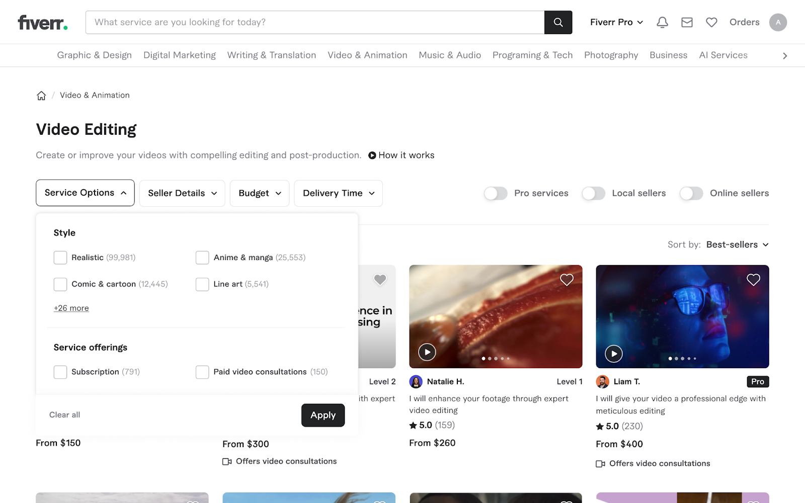 Para aumentar sua confiança na escolha do freelancer certo, a Fiverr oferece consultorias por vídeo pagas. Agende uma chamada com freelancers específicos antes de fazer um pedido para discutir seus serviços, objetivos do projeto, requisitos específicos e necessidades gerais do projeto, preparando o terreno para uma colaboração bem-sucedida.